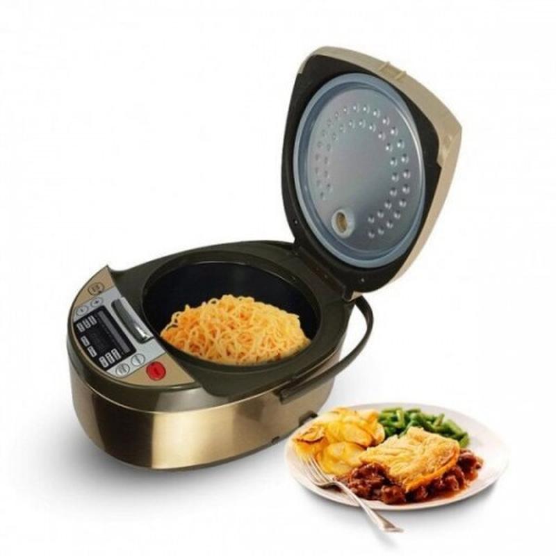 Описание Мультиварка Rainberg Rb-6207 С Фритюрницей, 12 Программ (D2) Мультиварка с фритюрницей Rainberg RB-6207 - многофункциональный кухонный электроприбор с программным управлением, предназначенный для приготовления блюд в автоматическом или полуавтоматическом режиме. Позволяет варить, жарить, печь, тушить, готовить на пару и во фритюре, подогревать уже приготовленные блюда, поддерживать блюдо горячим длительное время, при этом не требуя постоянного контроля. При создании рецептов для мультиварок, как правило, стремятся добиться приготовления блюда «в одно действие», чтобы пользователь мог заложить ингредиенты, нажать кнопку и, по истечении более или менее длительного времени, получить готовое блюдо, не вмешиваясь в процесс его приготовления. Характеристики мультиварки Rainberg RB-6207: Тип управления - Электронное Потребляемая мощность (Вт): 1500 Управление: электронное Материал корпуса: металл+пластик Объем (л): 6 Количество программ приготовления : 12 Покрытие чаши: тефлоновое Поддержание тепла: да Отложенный старт: да Максимальное время установки таймера (ч): 24 Плов, тушение, жарка, приготовление круп, выпечка, приготовление йогурта, тесто, пастеризация Особенности: выпечка хлеба, стерилизация посуды. Размеры : 29 х 28 х 27 см Вес : 3, 6 кг. Комплектация: Мультиварка Rainberg RB-6207 Съемная чаша Мерный стаканчик Суповая ложка Лопатка Сетка для фритюра Кабель питания Инструкция Книга рецептов Коробка