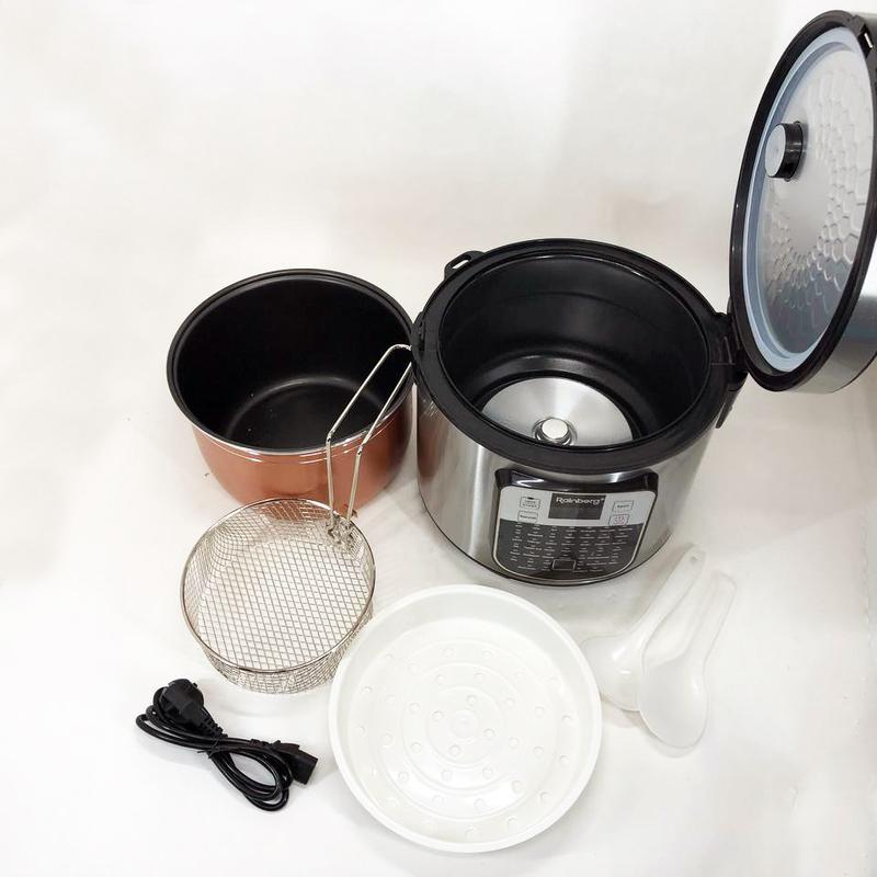 🔴ВИДЕО РАСПАКОВКИ ТОВАРА НИЖЕ!🔴 ⚡ Вы получите такой товар, как на видео! 👇Жми "Подробнее!"👇 🛡️ Бытовая мультиварка скороварка пароварка Rainberg, Мультиварка пароварка скороварка для дома OK-62 ⚡ Мультиварка Rainberg RB-6209 это простой и понятный кухонный прибор, который предназначен для готовки блюд различными способами обработки. Управление электронное, и очень простое – для каждой программы существует собственная кнопка, информация, а также часы отображаются на жидкокристаллическом дисплее. Ваше самое любимое блюдо Вы сможете приготовить в мультиварке Rainberg Германия наилучшим образом благодаря равномерному нагреву пищи. Продукты в мультиварке прогреваются равномерно со всех сторон ― снизу, по бокам и сверху. В мультиварке используется LED-дисплей, который делает управление и работу с ней удобным и простым процессом. Обучиться управлению мультиваркой не составит труда даже людям с минимальным опытом в использовании бытовой техники. ⚡ Основные характеристики - ✅ Мощность 1000 Вт; - ✅ Объем чаши 6 л; - ✅ Количество программ 45; - ✅ Дисплей есть. - ✅ Мультикомпьютерный контроль - ✅ Режимы: рис, плов, варка экспресс, суп, разогрев, пар, выпечка/хлеб, каша, тушение, жарка, стерилизация. ⚡ Дополнительные характеристики - ✅ Пароварка - ✅ Рисоварка - ✅ Автоподгрев; - ✅ Ручной режим - ✅ Управление электронное; - ✅ Внутреннее покрытие кастрюли -антипригарное; - ✅ Таймер отсрочки приготовления есть, 24-часовой; - ✅ Программы приготовления; ⚡ Особенности - ✅ Напряжение: 220-240 В / 50 Гц; - ✅ Класс защиты II; - ✅ Дисплей: цифровой LED; - ✅ Технология приготовления: тепловая обработка без давления; - ✅ Функция поддержания температуры готовых блюд: до 24 ч; - ✅ Функция разогрева блюд: до 24 ч. 📝 Дополнительные параметры - ✅ Страна производитель: Китай - ✅ Потребляемая мощность: 1000 - ✅ Назначение: Бытовое - ✅ Материал корпуса: Нержавеющая сталь - ✅ Цвет корпуса: Серебристый - ✅ Номинальное напряжение: 220 В - ✅ Тип прибора: Скороварка/мультиварка - ✅ Производитель: Rainberg - ✅ Объем: 6 - ✅ Покрытие чаши: Покрытие чаши - ✅ Состояние: Новое - ✅ Тип управления: Сенсорное