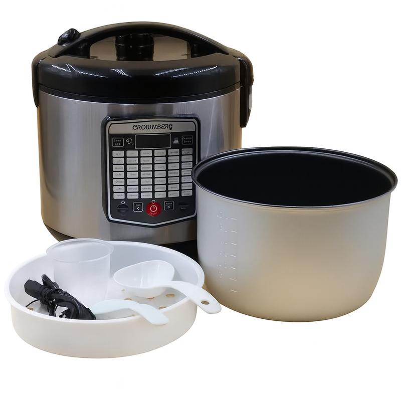 Мультиварка Crownberg -- это современное устройство для приготовления как повседневных, так и сложных блюд без лишних усилий! С её помощью легко готовить вкусные блюда без постоянного контроля, а разнообразие программ и функций обеспечит стабильный и идеальный результат. Преимущества мультиварки Crownberg: - 42 автоматические программы для готовки, идеально подходящие для любого рецепта! 🍲 - Вместительная чаша объёмом 5 литров -- достаточно для всей семьи! 🥘 - Мощность 1000 Вт для равномерного нагрева и быстрой готовки 🔥 - Удобное электронное управление с дисплеем для лёгкости настройки ⏲️ - Функция отсрочки старта -- приготовьте блюдо заранее и наслаждайтесь свежими угощениями, когда хотите ⏳ - Возможность поддержания температуры готового блюда до подачи 🍽️ - Антипригарное покрытие чаши для лёгкости в уходе и предотвращения пригорания 🍳 - Защита от перегрева для безопасного использования 🔒 Технические характеристики: - Тип устройства: мультиварка - Мощность: 1000 Вт - Объём чаши: 5 л - Количество программ: 42 - Управление: электронное - Дисплей: есть - Отсрочка старта: есть - Поддержание тепла: есть - Покрытие чаши: антипригарное - Материал корпуса: нержавеющая сталь и пластик Комплектация: - Мультиварка - Чаша с антипригарным покрытием - Аксессуары для приготовления - Инструкция по эксплуатации 🚚 Доставка Новой Почтой 1-2 дня 🚚 Доставка Укр Почтой 2-5 дней 💳 Оплата при получении ✅ Гарантия от KLY Shop