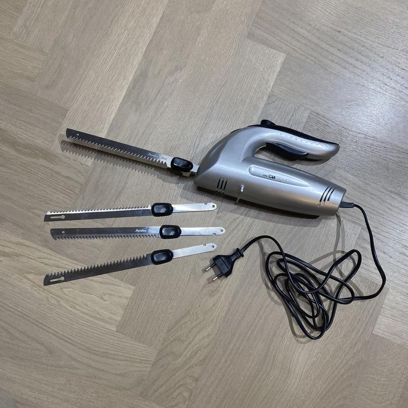 Електроніж CLATRONIC EM 3062 стане незамінним помічником на кухні. Він без зусиль наріже м'ясо, рибу, овочі та фрукти, а також безпечно сховає банку. У роботі з електроніком, Вам будуть потрібні лише мінімальні зусилля. Ергономічна ручка зручно ляже в руку. Clatronic EM 3062 — це якісний електроніж, обладнаний запобіжним перемикачем, що сприяє максимальній безпеці. Прилад обладнаний захистом пальців, а також має кнопку розблокування леза. Це кухонний електричний інструмент, який вирізняється низьким рівнем шуму та вібрацій. Він обладнаний подвійною зазубреною різальною крайкою, виготовленою з неіржавкої сталі. Характеристики електроножа CLATRONIC EM 3062 Тип:... Стан: Вживане.