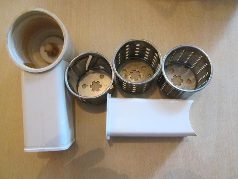 Овочерізка до м'ясорубки MOULINEX HV3, HV8 (підходить до всіх моделей циліндричного НЕ конусного типу блоку подрібнювача) На 2 фото терка по середині - ПРОДАНА! ціна за все=350грн. 1.Блок для терок 2.терки-2шт. (для моркви і шинковка) терка шинкування НОВА.