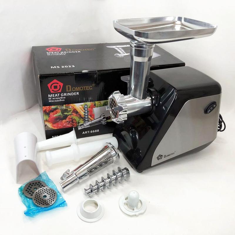 Электрическая мясорубка соковыжималка domotec ms-2023 (3000 вт, томаты) с насадками, мясор...
