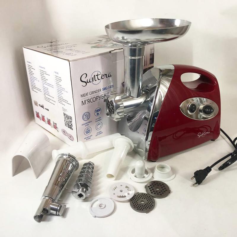Электромясорубка suntera smg-5420r 1800 вт, электромясорубка соч для томатов, мясорубка дл...
