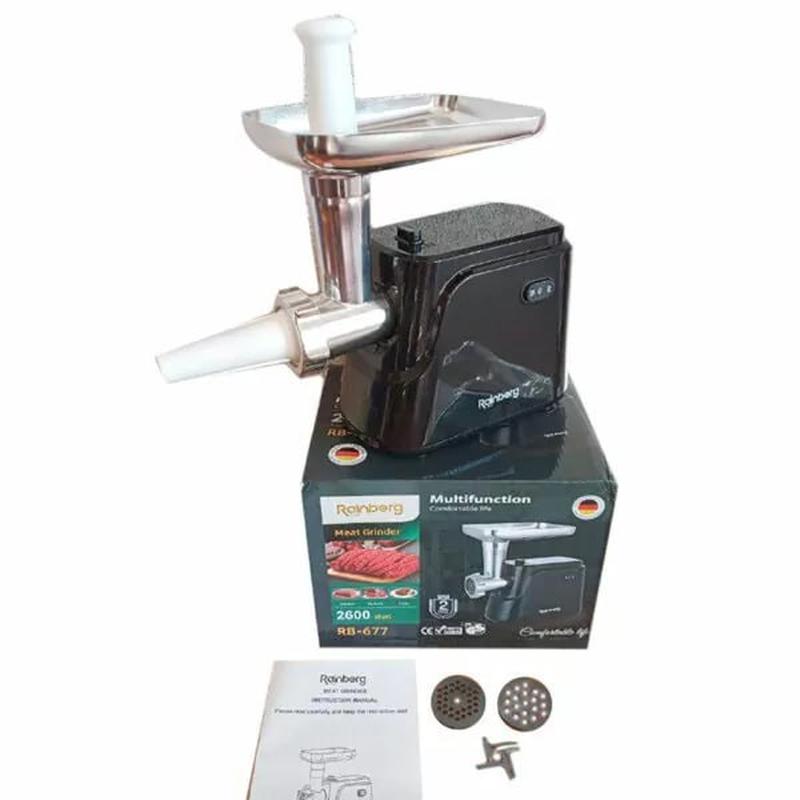Электромясорубка Rainberg RB-677 в металлическом корпусе. Этот прибор значительно упрощает процесс приготовления фарша и домашних колбас. Мощность 2600 Вт и производительность 1.5 кг в минуту позволяют быстро обрабатывать даже большие объемы мяса. Функция реверса помогает справляться с жилистыми кусками, предотвращая заклинивание шнека. Особенность модели в пониженном уровне шума, что позволяет использовать ее в любое время суток, не беспокоя домочадцев. Прорезиненные ножки обеспечивают устойчивость на кухонной поверхности во время работы. Усиленный шнек и ножи из нержавеющей стали гарантируют долговечность и эффективность работы. Защита от перегрузок предотвращает поломку двигателя при случайном попадании твердых частиц. Качественный ABS-пластик корпуса устойчив к механическим воздействиям и прост в уходе. Компактные размеры позволяют удобно хранить устройство даже в небольшом кухонном шкафу. Доставка возможна через отделение Новой Почты, Укрпошты. Оплата осуществляется банковской картой или наложенным платежом при получении. При выборе наложенного платежа вы можете проверить комплектацию и состояние мясорубки перед окончательным расчетом. В комплект входит мясорубка, нож для фарша, две сеточки, лоток из нержавеющей стали, насадка для колбас, толкатель и инструкция. Технические характеристики: Мощность: 2600 Вт. Производительность: 1.5 кг/мин. Материал корпуса: ABS-пластик. Материал ножей: нержавеющая сталь. Напряжение: 220 В. Функции: реверс, защита от перегрузки. Размеры: 18×22×13 см. Нужны дополнительные фото/видео товара или полный каталог товаров? Мы собрали все материалы для удобного просмотра. Чтобы получить доступ, просто пишите нам слово "каталог" в личные сообщения.Мы сразу отправим вам ссылки и поможем с выбором. Также ответим на звонки.Скажите ID для вопроса об этом товаре. ID (хештег) этого товара #B7