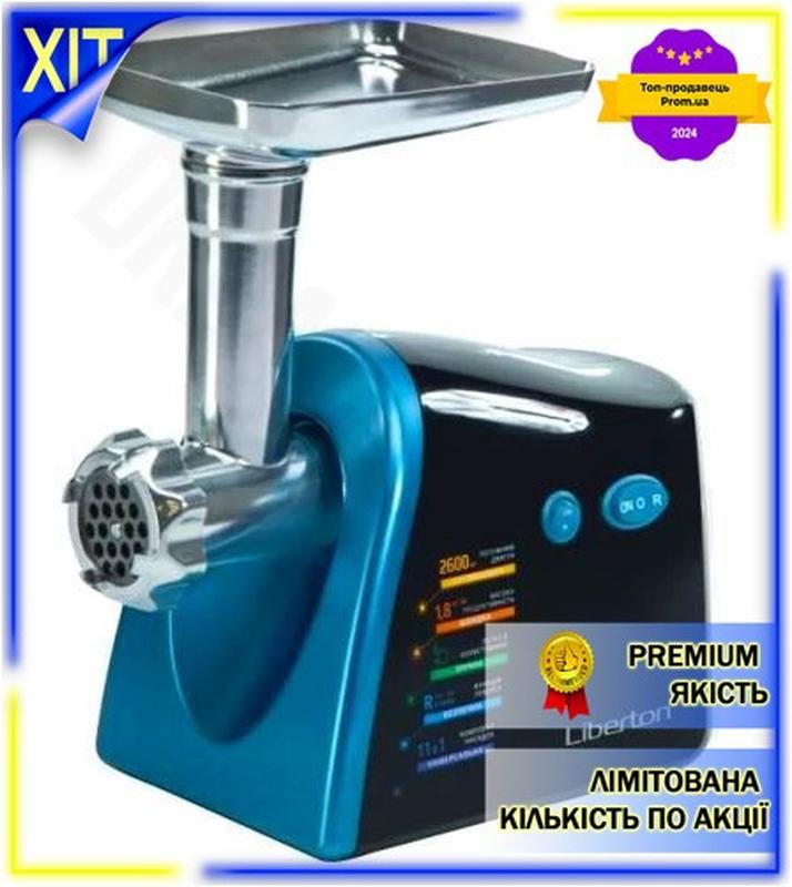 Dm мясорубка liberton 2600w спецификация 2.2 черная/синяя для измельчения мяса и овощей со...