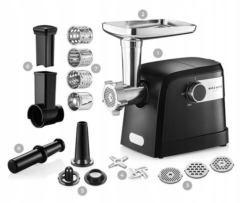 Мясорубка mozano smash master 2000 вт - 3 режима, измельчитель, насадки для колбас и кеббе