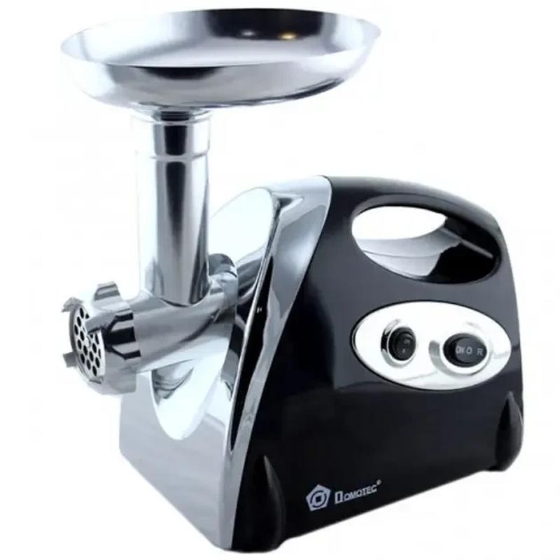 Электромясорубка Domotec MS-2025 (соковыжималка, терки и шинковка) Электромясорубка Domotec 4800W с соковыжималкой и насадкой для колбас и кеббе. С помощью этой мясорубки можно быстро приготовить более нежный фарш для любых блюд, а также сок из овощей и фруктов. Теперь Вы можете готовить с удовольствием и радовать кулинарными шедеврами семью и друзей. Функция реверса позволяет решить проблему намотки жил на шнеке. Достаточно остановить мотор, нажать кнопку реверса, и причина засора будет устранена. Характеристики: Материал корпуса: пластик/металл; защита двигателя от погрузки; переработка мяса, рыбы и овощей; Переключатель реверсного вращения; Прорезиновая база для предотвращения скольжения; Количество решеток: 3 перфорированных диска с отверстиями разного диаметра: 7 мм, 5 мм, 3 мм.; Насадка для соковыжималки; Мощность: 4800 Вт; Комплектация: Мясорубка; Насадка для фарша; Насадка для сока; Насадка для колбасы; Насадка "кеббе"; 3 вида решетки; Инструкция; Упаковка