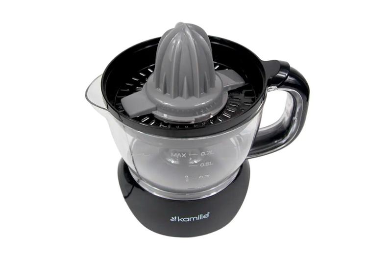 Соковыжималка электрическая Kamille KM 6738 для цитрусовых позволит за считанные секунды выдавить сок и подать его к столу. в удобном кувшине с ручкой и носиком, из которого удобно разливать фреш по стаканам. Преимущество такой конструкции — в возможности подать сок на стол в этой же емкости, а также хранить в ней в холодильнике. Комплектуется двумя насадками для апельсинов и лимонов, и крышкой. Корпус соковыжималки оснащен ножками, которые не скользят. Все детали легко снимаются и очищаются.