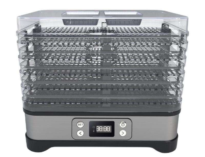 Сушилка для овощей, фруктов, грибов HEINRICH'S HDR 8502 Быстрее получить ответ на Ваши вопросы Вы можете по Viber ********** , WhatsApp ********** ВЫСШЕЕ КАЧЕСТВО XL БОЛЬШОЙ СУШИЛКА ДЛЯ ФРУКТОВ И ГРИБЫ ОТРЕМОНТ КОМПАНИИ HEINRICH`S МОДЕЛЬ: HDR 8502 В электросушилке HEINRICH`S, благодаря 6 прикрепленным решетам, эффективно сушится большое количество продуктов за один раз. Просто выложите нарезанные продукты (фрукты, грибы, овощи, зелень, цветы, мясо или рыбу) на сита и, выбрав нужную температуру, приступайте к сушке. Причины приобрести сушилку для фруктов Heinrich`s 8502: ХРАНЕНИЕ ЗДОРОВЫХ ПРОДУКТОВ С сушилкой для фруктов На зиму можно заготовить большой запас сушеных овощей, фруктов и грибов, которые отлично подойдут для приготовления вкусных супов или полезных компотов из яблок, слив или груш. С другой стороны, из сушеных апельсинов и мандаринов можно приготовить красивые украшения не только к Рождеству. Кроме того, вы сможете ощутить вкус домашнего травяного чая из собранной вручную и сушеной мяты, липы или сирени... ??СУШКА БОЛЬШОГО КОЛИЧЕСТВА ПРОДУКТОВ ОДНОВРЕМЕННО ПРОСТОТА В ЭКСПЛУАТАЦИИ Просто положите нарезанные продукты (фрукты, грибы, овощи, зелень, цветы, мясо или рыбу) на сита и, выбрав нужную температуру, приступайте к сушке. ПРАКТИЧНОСТЬ Сушильные экраны можно мыть в посудомоечной машине. Оснащенная 6 ситами сушилка найдет широкое применение в больших семьях, где часто заготавливается большое количество грибов и фруктов. Сушеные продукты - вкусная и полезная добавка ко многим блюдам. Выбирайте одну из качественных моделей и открывайте новые рецепты. Это отличное предложение для всех, кто заботится о сбалансированном питании и ищет новые решения на пути к фигуре своей мечты. Что мы можем высушить? Фрукты: абрикосы, персики, яблоки, бананы, виноград, груши, киви, черника, вишня, черника, клубника, кокосовая стружка, финики, инжир, сливы, клюква, ревень и др. Овощи: морковь, огурцы, свекла, помидоры, лук, перец, баклажаны, картофель, сельдерей, кабачки, репа, кукуруза, горох и фасоль и др. Травы и специи: петрушка, базилик, орегано, тимьян, кориандр, мята и др. Мясо: птица, говядина, свинина и даже оленина. Грибы: шампиньоны, белые грибы, маслята, подберезовики, красные опята, гусей, шампиньоны, трюфели и др. Семена и орехи, а также Молочные продукты: йогурты и сыры. ЛЕГКО ИСПОЛЬЗОВАТЬ Просто выложите нарезанные продукты (фрукты, грибы, овощи, зелень, цветы, мясо или рыбу) на сита и, выбрав нужную температуру, приступайте к сушке. С помощью сушилки для фруктов можно заготовить на зиму большой запас сушеных овощей, фруктов и грибов, которые идеально подходят для приготовления вкусных супов или полезных компотов из яблок, слив или груш. С другой стороны, из сушеных апельсинов и мандаринов можно приготовить красивые украшения не только к Рождеству. Кроме того, вы можете почувствовать вкус домашнего травяного чая из собранных вручную и сушеных ягод мяты, липы или бузины. Удобный Обслуживание сушилки быстрое, удобное и простое. Аксессуары включают 6 сит, которые можно мыть в посудомоечной машине. ЛЕГКО ИСПОЛЬЗОВАТЬ Просто выложите нарезанные продукты (фрукты, грибы, овощи, зелень, цветы, мясо или рыбу) на сита и, выбрав нужную температуру, приступайте к сушке. ТЕХНИЧЕСКИЕ ПАРАМЕТРЫ: - С контролем температуры - ЖК-дисплей для удобства эксплуатации - нержавеющая сталь - Таймер до 72 часов - Темп