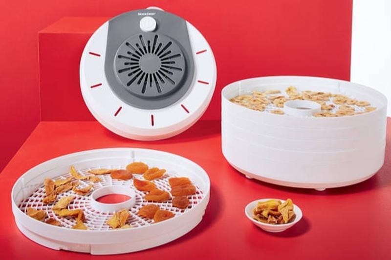 Дегидратор SILVERCREST®. Для сушки фруктов, овощей, трав, мяса и рыбы. 5 штабелируемых контейнере, ø 28,5 см – высота регулируется на 3 уровнях (3x 3.5 мм – макс. высота 10,5 мм). Мощность: 250 Вт. Цена: 1750грн.