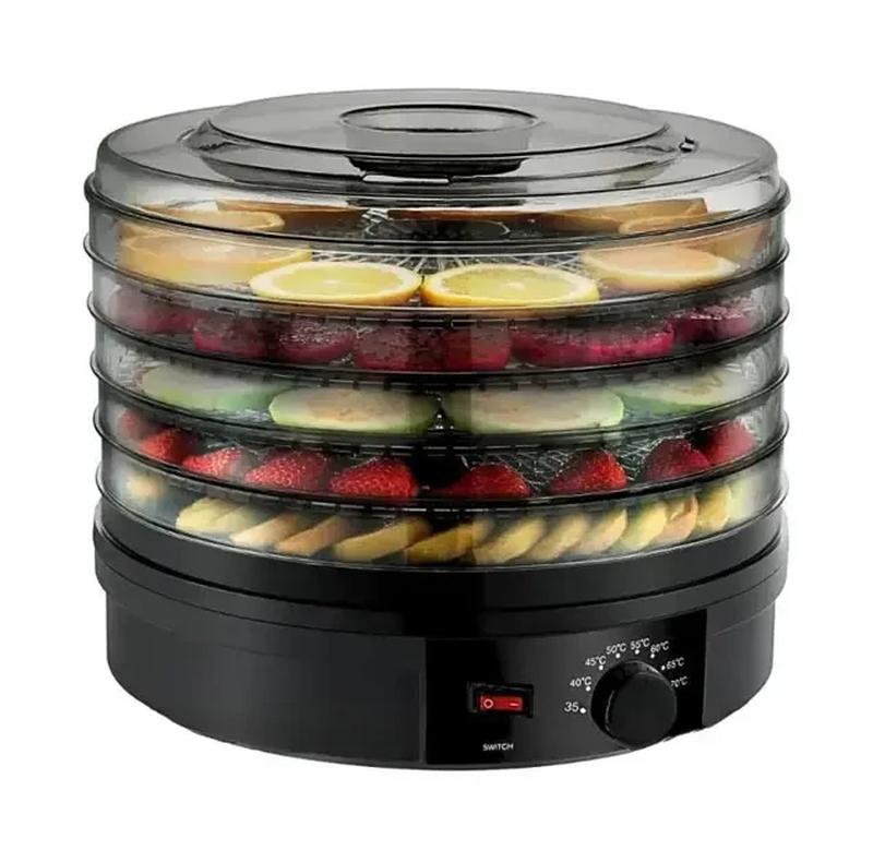 Сушилка для фруктов и овощей ZEPLINE ZP-029 Сушилки для овощей и фруктов дегидратор Zepline ZP-029 электрический 800 Вт 5 секций. Вы можете использовать ее для высушивания фруктов, овощей, грибов, ягод и лекарственных трав, которые сохранят максимум полезных свойств. Прочный пластиковый корпус и наличие пяти секций для размещения продуктов делают его эффективным и надежным. Прозрачная крышка позволяет следить за процессом высушивания. Достоинства: Возможность регулировки температуры сушки; функция вентилятора; Пластиковые поддоны выдерживают нагрузку до 1 кг; Равномерное распределение прогрева по всем поддонам. Характеристики: Мощность: 800 Вт Питание: сеть 220-240V/50-60Hz; Диапазон температур: 35-70°C; Защита от перегрева: да; Количество уровней сушки: 5; до 1 кг на поддон; Материал: металл; Высота поддонов - 4 см Длина кабеля питания: 1 м; Вес: 2,5 кг. размер 32х28 см Комплектация: Сушилка для овощей и фруктов. Прозрачная крышка. Пять съемных пластиковых поддонов