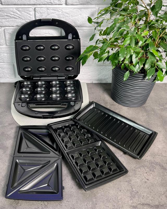 Сэндвичница бутербродница гриль вафельница орешница 4в1 1000 вт со съемными формами domote...
