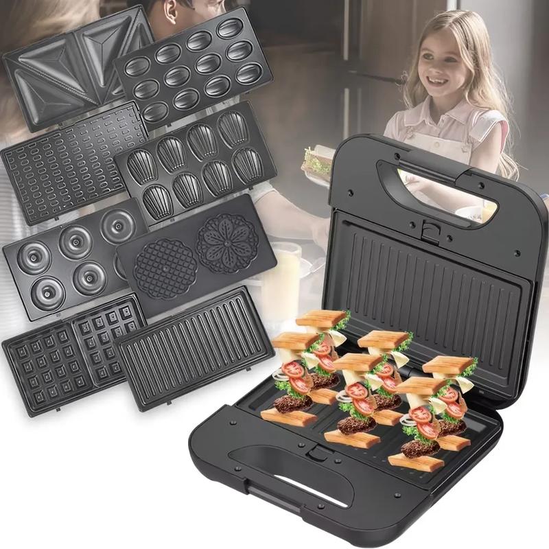 состав 1. Артикул: R2291 Мультипекарь 8 в 1 со съемными формами 8 типов RAF R.2291 800 Вт Мультипекарь RAF R.2291 – это универсальное устройство 8-в-1, которое станет отличным помощником на кухне. Благодаря сменным панелям вы сможете готовить разнообразные блюда: вафли, сэндвичи, пончики, гриль, печенье, омлеты, кесадилью и многое другое. Компактный размер и простое управление делают его удобным в использовании, а качественные материалы обеспечивают долговечность. Данный прибор позволяет экономить место, заменяя несколько кухонных устройств. RAF R.2291 идеально подойдет для приготовления блюд для всей семьи, превращая ежедневную готовку в удовольствие. Преимущества: 8 сменных панелей: Для приготовления вафель, гриля, орешков, печенья, пончиков, сэндвичей и других блюд. Мощность 800 Вт: Быстрое приготовление блюд и защита от перегрева для безопасного использования. Антипригарное покрытие: Тефлоновые панели легко чистить и можно мыть в посудомоечной машине. Прочный корпус: Металлический с пластиковыми элементами, устойчивый к повреждениям. Компактный дизайн: удобное хранение даже в небольших кухонных шкафах. Механическое управление: Простое и интуитивное использование. Равномерный нагрев: Встроенный термостат обеспечивает стабильный результат. Многофункциональность: заменяет несколько приборов на кухне. Индикатор нагрева и неналаживающая ручка: Дополнительный комфорт и безопасность. Характеристики: Тип: Многофункциональная сэндвичница, вафельница, мультимейкер. Мощность: 800 Вт. Рабочая поверхность: Гриль, вафельница, орешница, панели для сэндвичей, пончиков, печенья и т.д. Антипригарное покрытие: Тефлоновое (фторополимер). Цвет: Черный, нержавеющая сталь. Количество отделений: 2. Сменные пластины: 8 различных видов для приготовления различных блюд. Дополнительно: вертикальное хранение, индикатор нагрева, неналаживающая ручка. Габарити: 9 см х 21 см х 21 см.