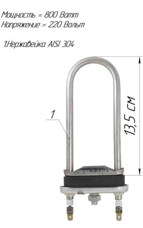 Тэн для стиральной машины без внутренней петли samsung 800 вт, длина 135 мм