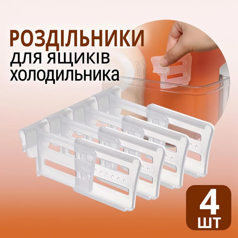 Разделитель перегородка для ящиков в дверцу холодильника, набор 4шт