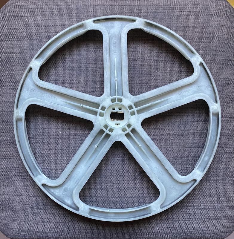 Дивіться мої інші оголошення! Шків барабана для пральної машини Zanussi, Electrolux, AEG 1552330. Важлива деталь для пральної машини, яка забезпечує плавне, без ривків і вібрації, обертання барабана. Це система з двома кільцями з обідком, які з'єднані ребрами жорсткості. На шків кріпиться ремінна передача, за рахунок чого крутний момент передається з двигуна на барабан пральної машини.