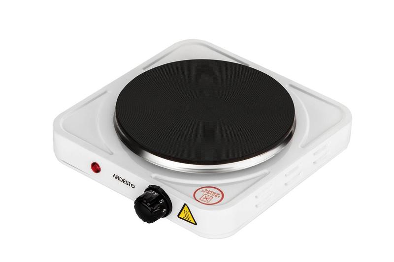 Плита електрична 1 диск KB-2054 Електроплита з однією конфоркою. Така плита буде корисною для маленьких приміщень, де навіть відсутня сама кухня. Не займе багато місця, зручно приєднується до мережі та керується за допомогою поворотного перемикача на передній панелі. Такий перемикач плавно регулює нагрівання конфорки, а світловий індикатор роботи нагадає про включення або вимкнення. Потужність плити складає 1000 Вт. Це досить потужна конфорка, на яку ви зможете приготувати потрібну страву досить швидко. Плита однаково дбайливо ставиться до посуду різного діаметра та об'єму. Як нагрівальний елемент використовується двокінцевий вузький ТЕН. Плита має невеликі габарити – 210х210х40 мм. Завдяки глянсовій поверхні плита легко миється та чиститься. Управління плитою цілком просте та ергономічне. Серед функцій безпеки є захист від перегріву. Плита має можливість нагрівати посуд із будь-якого матеріалу. Ніжки плити прогумовані, міцно стоять на будь- якій поверхні, не ковзають по столу. Вага плити складає всього 1,5 кг, її зручно переносити в різні частини кухні або іншого приміщення, комфортно зберігати.
