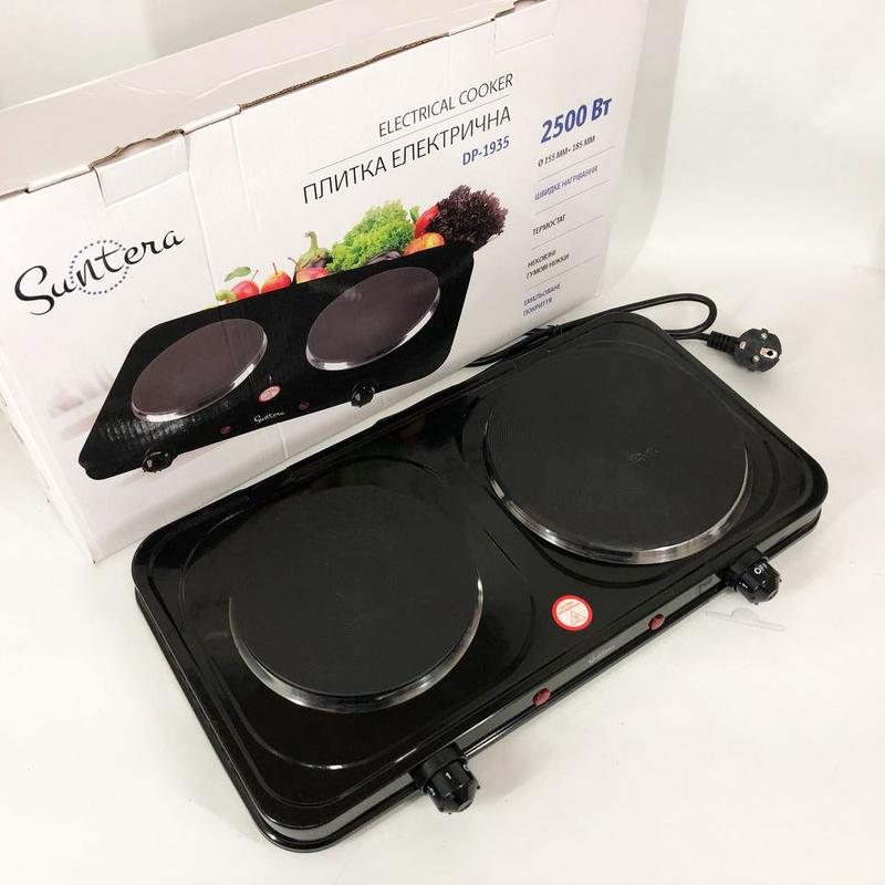 Плитка настольная электрическая suntera dp-1935b, 2500 w, 2 конфорки разного диаметра. цве...