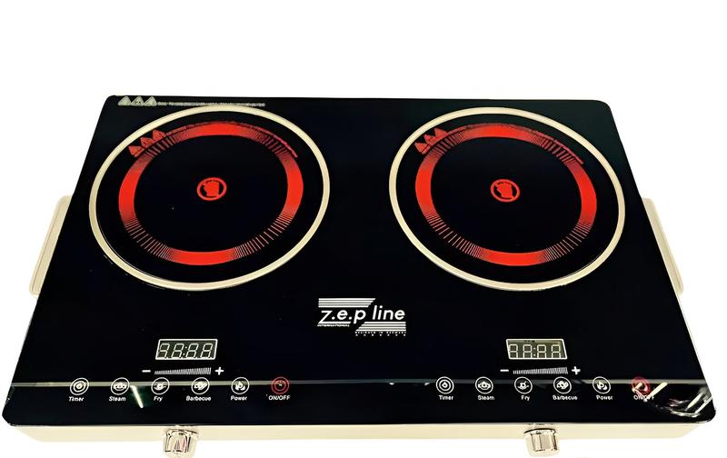 Она компактная, простая в использовании, не занимает много места на кухне. Эта многофункциональная плита идеальна для небольших помещений, для дачи или путешествий. Для приготовления и разогрева пищи можно использовать посуду из любого термостойкого материала: стали, чугуна, алюминия, меди, керамики, закаленного стекла и т.д. Электроплита Zepline ZP-062 с двумя конфорками очень экономичен и не требует особого ухода. Она тратит гораздо меньше энергии и времени на приготовление пищи, а попавшая на ее поверхность пища не пригорает, плиту можно очистить сразу с помощью салфетки. Верхняя часть варочной поверхности выполнена из стеклокерамики, достаточно-таки высокой прочности. С помощью кнопок на нижней части корпуса можно выставить время приготовления, выбрать уровень потребляемой мощности, отрегулировать температуру нагрева от 80 до 270 С. Разогрев в ней происходит с помощью генерирующих инфракрасное ТЭНов излучение, а нагрев основан на том, что вода в продуктах это излучение поглощает. В этом образуются большие объемы тепла. Характеристики: тип: инфракрасная плита; покрытие варочной поверхности: стеклокерамика; тип управления: сенсорное; общее количество конфорок: 2; быстрый разогрев до температуры: 270 градусов; питание: 220-240 В ~ 50/60 Гц; мощность при включении двух конфорок: 4400 Вт;