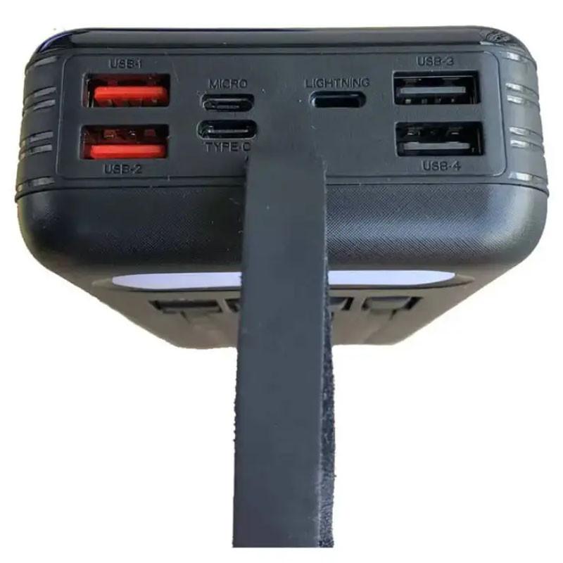 Внешний аккумулятор Sunix PB-05 50000 mah с лампой защищенный черный Емкость батареи мАч: 50000 Power Bank Sunix PB-05 50000 mAh -- надежный источник питания, который пригодится путешественникам и активным людям. Говорите по телефону, слушайте музыку, играйте, фотографируйте и снимайте больше видео с помощью Sunix PB-05. Корпус устройства изготовлен из прочного пластика. На корпусе расположен дисплей, на котором отображается уровень заряда батареи, а также сила тока и напряжение. В данной модели 4 USB-порта и 3 разъема: Type-C, micro-USB и Lightning. Также на корпусе устройства есть светодиодный фонарик, который включается двойным нажатием кнопки, расположенной сбоку. Помимо этого, в данном повербанке есть встроенные кабеля со всеми разъемами, включая USB-A, что весьма удобно. Емкость батареи 50000 mAh, номинальная емкость 30500 mAh. Сила тока на вход -- 2А, на выход -- 1.5А/2А/2,4А в зависимости от подключенного устройства Выходные интерфейсы: 4 x USB Type A Входящие интерфейсы: Lightning, Micro-USB, USB Type C Особенности: С фонариком Тип аккумуляторов: Литий-полимерный (Li-pol) Одновременно заряжаемых устройств: 4 Цвет: Черный Защита от: Короткого замыкания, Перегрев, Перезарядка Комплектация: Комплектация стильный павер банк 50000 mAh, Кабель для зарядки Micro-USB id nyi29676 3310-i29676