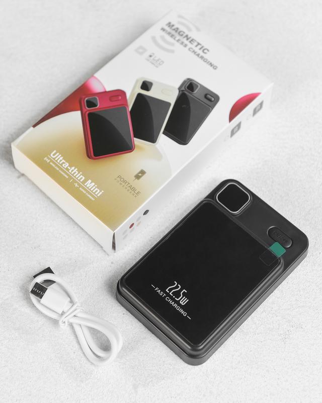 Беспроводное зарядное MagSafe Power Bank — это внешний аккумулятор емкостью в 10 000 mAh (при 3.7V) с функцией беспроводной зарядки MagSafe, совместим с моделями iPhone начиная с 12 серии. Чтобы начать заряд. вы лишь должны приутить данный портативный аккумулятор к магнитам MagSafe вашего гаджета. После этого зарядное и ваш Айфон станут как единое целое. Модель поддерживает не только беспроводную зарядку. Для всех остальных случаев существует разъем USB Type-C, который позволяет подключаться и использовать его как второстепенный источник энергии для различных устройств и гарантирует быструю подзарядку. собой. Оснащено индикатором, который отображает состояние батареи, поэтому разряженный внешний аккумулятор не застанет вас врасплох, и вы всегда будете осведомлены о необходимости подзарядки. Характеристики: Категория: Power Bank; Назначение: для планшетов, для телефонов, для смарт-часов; Емкость батареи: 10 000 mAh (при 3.7V); Заряжается от: Type-C; Тип батареи: литий-полимерные; Функции зарядки: QI беспроводная зарядка; Материал: пластик ; Совместимость: с моделями iPhone начиная с 12 серии; Особенности: MagSafe, быстрая зарядка батареи; Тип разъема: USB, Type-C, Lightning (iPhone) Мощность: 15W - беспроводная зарядка, 5v = 3A; 9v = 2A; 12v = 1.5A; Max 22.5W Размер корпуса: 106×68x18 мм.