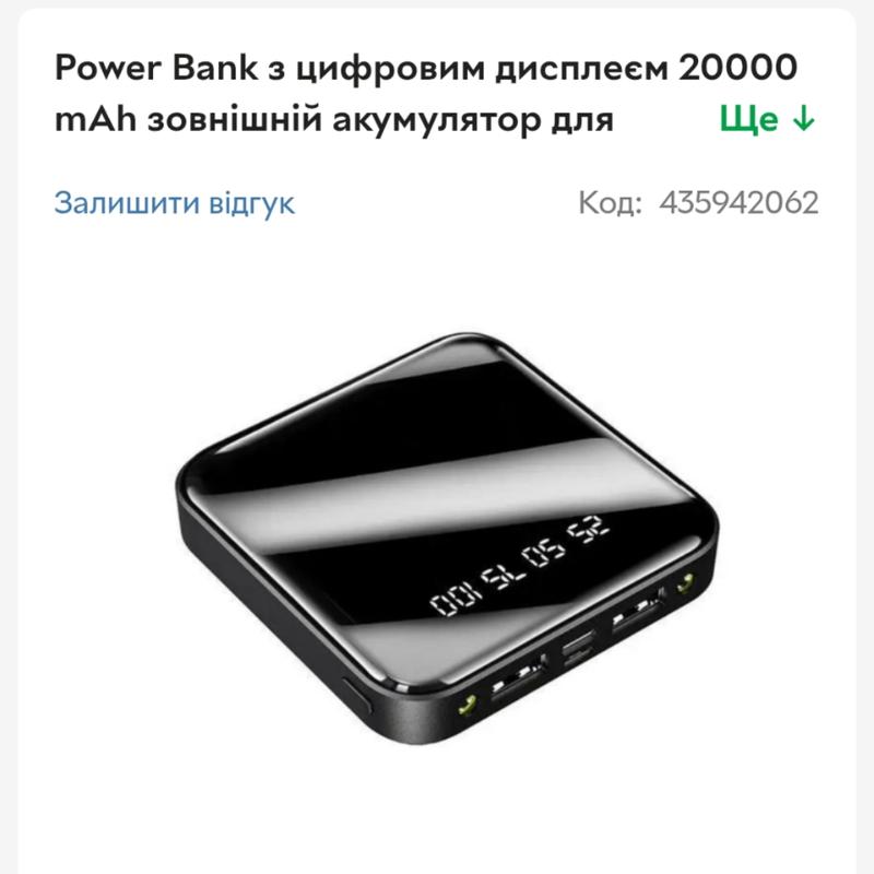 💛 с 2 по 13 октября я в отпуске. отправочек не будет🩵 🩷 Power Bank с цифровым дисплеем 20000 mAh внешний аккумулятор для мобильного телефона Вес: 0,22 КГ Материал корпуса: пластик Размер: 89*80*27 мм Емкость батареи: 20000 мА-ч 🤍 оплата одразу на карту 🩶 отправка только новой почтой