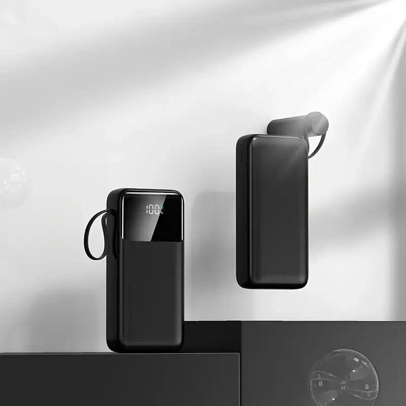 Power bank с led дисплеем батареи 20000 мач, двойными выходами и встроенным шнурком