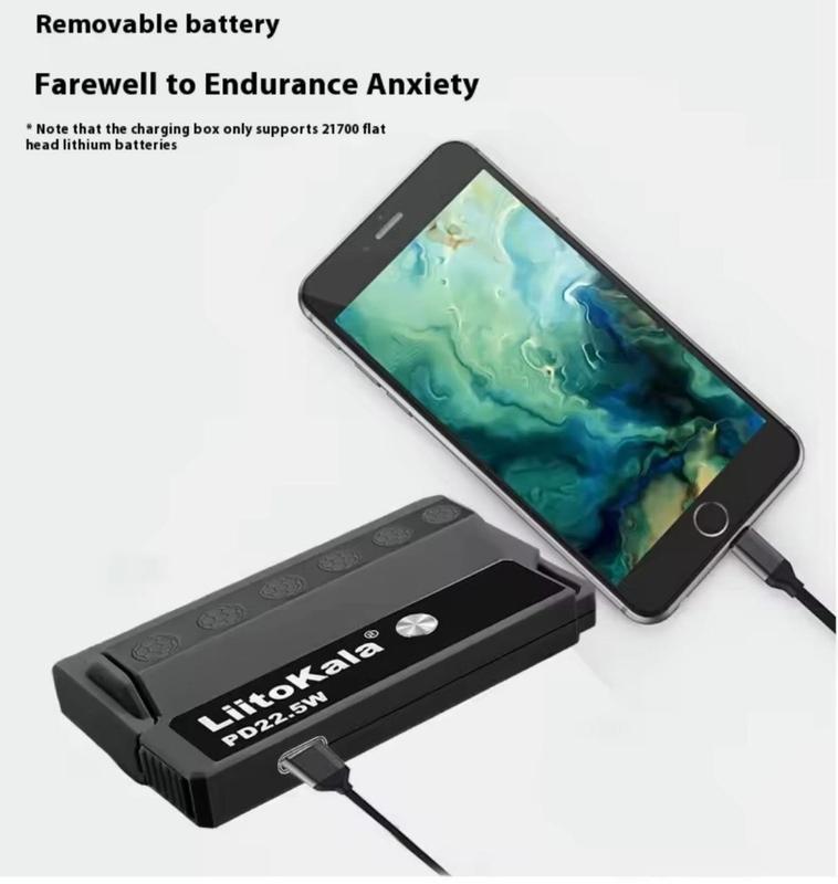 Портативний зарядний пристрій потужністю 22,5 Вт під акумулятор 21700(в комплект не входить) Основні характеристики Бренд: ЛітоКала Модель: PB-L01 Потужність: 22,5 Вт Вхід: 5 В/3 А, 9 В/2 А (підтримує двонаправлену швидку зарядку) Вихід: Тип-C: 5 В/3 А, 9 В/2,22 А, 10 В/2,25 А Додатковий вихід: 12 В/1,5 А Розміри: 85×49×25 мм Вага:40г