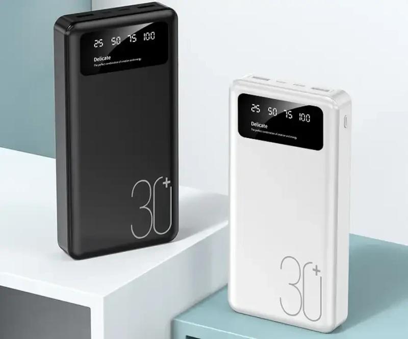 Power Bank 30000 мАч 5V2A Это надежное и универсальное устройство, обеспечивающее полноценную зарядку любого мобильного устройства. Благодаря емкости аккумулятора 30000 mAh он с легкостью зарядит ваш планшет, смартфон, плеер, фотоаппарат, наушники или любой другой гаджет. Основное: Большая емкость аккумулятора Высококачественные материалы Наличие фонарика Компактный и портативный дизайн Быстрая зарядка устройств Наличие светодиодного экрана Характеристики: Тип: внешний аккумулятор Тип аккумулятора: литиево-полимерный Материал: пластик Ёмкость аккумулятора: 30000 mAh Количество USB-портов: 2 с нагрузкой 5v 1A и 5v 2,1A Вход Micro-USB/Type-C: 5V/2A Дисплей: есть Особенности: функция быстрой зарядки, фонарик Цвет: черный