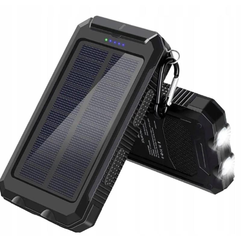 Повербанк 10 000 миллиампер с карабином фонарем компасом и уровнем заряда с солнечной пане...