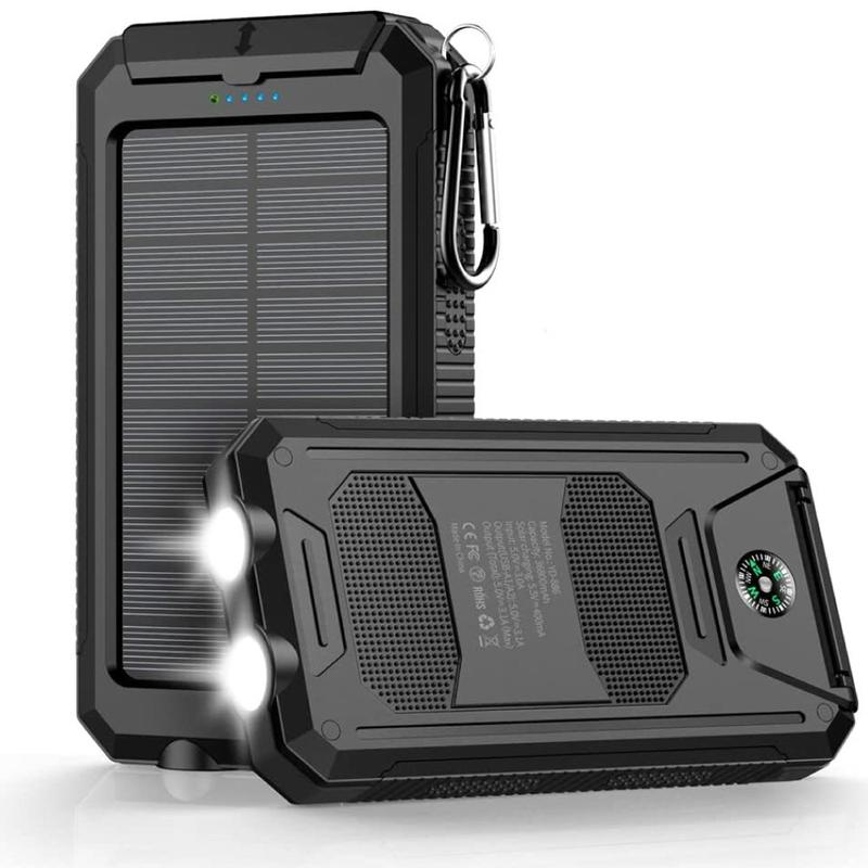 Повербанк 10 000 миллиампер с карабином фонарем компасом и уровнем заряда с солнечной пане...