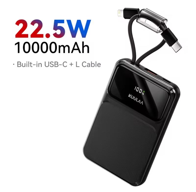 Корпус повербанка KUULAA 22.5W изготовлен из ударопрочных материалов, что делает внешний аккумулятор устойчивым к царапинам и трещинам. Powerbank KUULAA 22.5W со встроенными кабелями Type C и Lighting, экраном, на котором отображается оставшийся уровень заряда. Повербанк использует технологию разумной зарядки QC и имеет мощность 22.5W, что, в свою очередь, гарантирует быструю и эффективную зарядку всех ваших устройств. Поддержка быстрой зарядки Тип быстрой зарядки: USB PD Fast Charging + Quick Charge 3.0 Емкость аккумулятора: около 10000 мАч КПД: около ≥78% Сертификация качества: Европейский сертификат соответствия (CE)