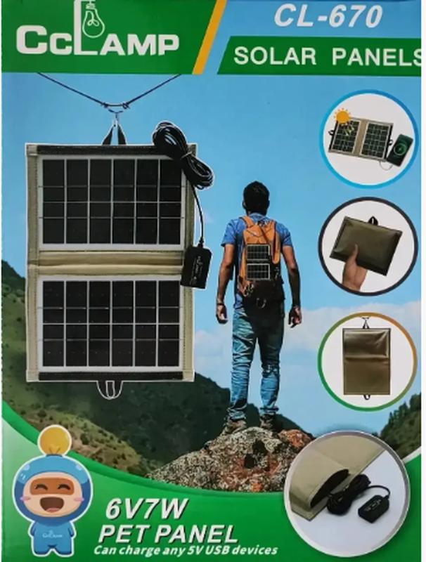 Солнечная панель CL-670 позволяет заряжать переносные устройства малой мощности в длительных походах и путешествиях. Предназначена для подзарядки смартфонов, сотовых телефонов, радиостанций, эхолотов, автомобильных аккумуляторов, GPS-навигаторов, КПК, электроники с разъемом USB. Для подключения к различным устройствам оснащена разъемом USB. Компактная и удобная в переноске - складная на тканевой основе. Совместимые устройства: смартфоны, сотовые телефоны, радиостанции, эхолоты, GPS-навигаторы, КПК, электроника с разъемом USB Характеристики: Максимальная мощность (Pmax): 7.2W Напряжение на Pmax(Vmp): 6V Ток при Pmax (Lmp): 1.2 А Напряжение (Voc): 7.2V Ток короткого замыкания (Lsc): 1.45 А 201x143x28 мм Комплектация: Солнечная панель USB кабель * Вся информация предоставлена заводом изготовителем и несет информационную политику. Завод оставляет за собой право вносит какие либо изменения в модификацию и характеристики, на что магазин повлиять не может и ответственности не несет.
