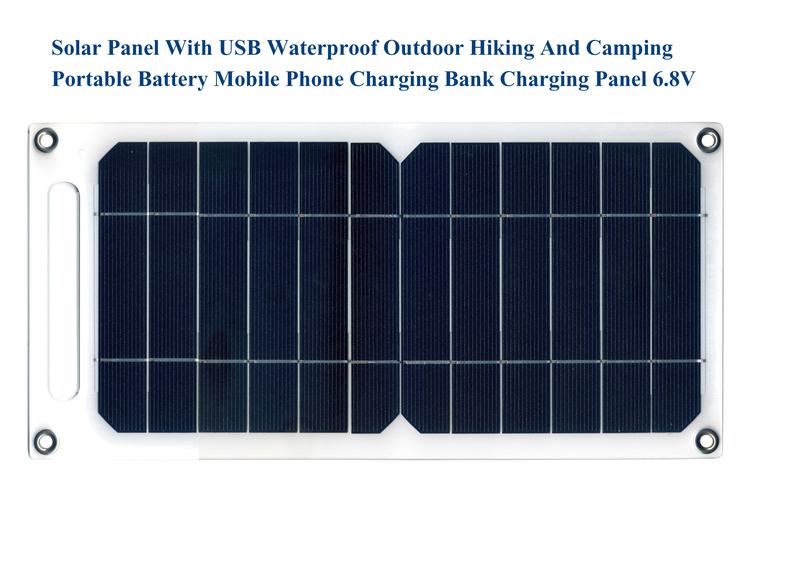Solar Panel With USB 30W Solar Panel With USB Waterproof Outdoor Hiking And Camping Portable Battery Mobile Phone Charging Bank Charging Panel 6.8V Водонепроникна сонячна панель з USB для використання у приміщенні та на відкритому повітрі, для походів та кемпінгу. функції: • Джерело – сонячна енергія • Монокристалічний кремній: сонячні елементи з поверхневим ущільненням з епоксидної смоли • Ультратонкий: легкий дизайн • Стандартний вихід USB: сумісний із мобільними телефонами та іншими портативними цифровими пристроями Технічні характеристики: • Brand Name: luxuglow • Потужність: 6 Вт • Ефективність модуля: 24% • Сонячна потужність: 6,8В, 1,2А • Кількість осередків: 2 • Сертифікація: CE, FCC • Гнучка сонячна панель: ні • Колір: білий/чорний • Матеріал: монокристалічний кремній • Розміри: 24 х 14 х 2,5 см У комплект поставки входить: • Пакувальна коробка • Сонячна панель • 2 гачки Примітка: по факту на сонці, струм складає 0,4А