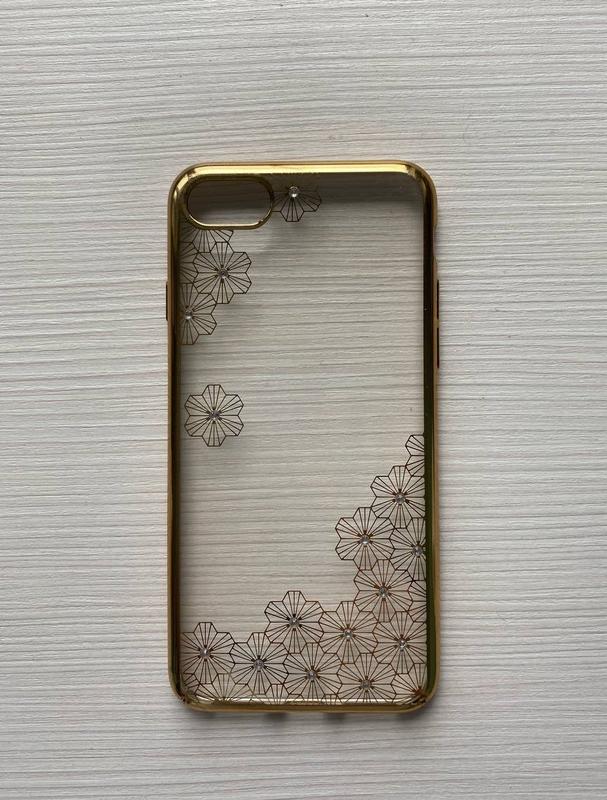 Чохол з золотистим орнаментом та стразами Модель: iPhone SE, 7/8 Бренд: Mooke 📍Ціна : договірна Дефекти: трохи подряпаний корпус За питаннями або додатковими фото пишіть. Дивіться також інші мої оголошення.