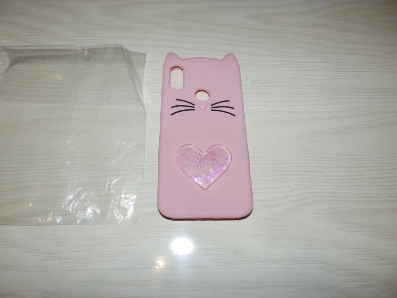 Чехол 3d с переливающимися блестками для xiaomi redmi note 7 pro кот сердце