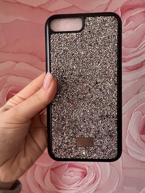 Чохол на айфон 7/8плюс. Очень классного качества. В комплекте идет коробочка. Изысканный. Нереально классно переливается и блестит. Трещи потертый надпись сваровски, при носке вообще не заметно.