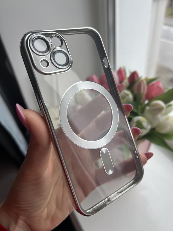 Shining With Magsafe iphone 11 - є чорний, золото, срібло, сієрра блу, фіолетовий. iphone 11 pro - є чорний, золото, срібло, сієрра блу. iphone 11 pro max - є золото, зелений. iphone 12 - золото, срібло. iphone 12 PRO - темно-синій, золото, срібло. iphone 13 - золото, срібло, сієрра блу, рожевий iphone 13 PRO - чорний, золото, срібло, сієрра блу, фіолетовий, зелений. iphone 13 Pro Max - чорний, золото, срібло, сієрра блу, зелений. iphone 14 - чорний, срібло, сієрра блу, фіолетовий iphone 14 Plus - чорний, срібло, сієрра блу, фіолетовий. iphone 14 pro - чорний, срібло, золото, фіолетовий iphone 14 Pro Max - золото, фіолетовий. • Квадратні кутики на всі моделі. • Закрита камера, низ, кнопки та бортики вищі екрана. Також є додаткове скло на самі лінзи камери. • матеріал - силікон. • чохол із підтримкою MagSafe