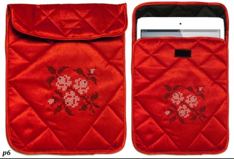 Чехлы для iPad или планшетов на Android изготовлены из нескольких слоев ткани: сатина, уплотнительного материала и синтепона. Поэтому они защищают не только от царапин, но и от повреждений в результате незначительного падения. В данной коллекции разработано 2 модели: чехлы-вышиванки и чехлы с клапаном. Чехлы для планшета выполнены в трех цветах (черный, синий, красный), украшены подкладкой контрастного цвета, и декорированы вышивкой. Застежка-липучка, или клапан с липучкой. Размер чехлов - 23х29см, расстояние между швами 22х29см. нольделяттричетырешим-симтришнул восемью