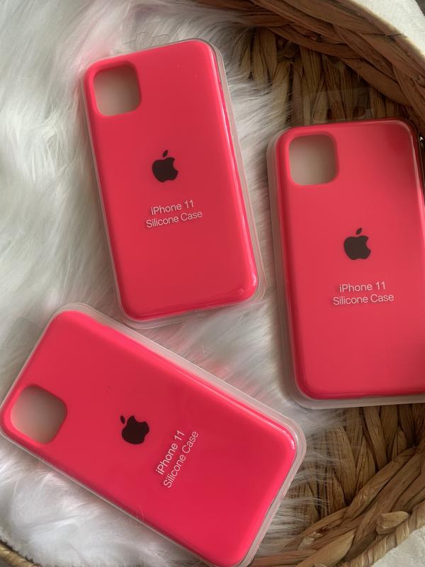 Чехол silicone case на iPhone 11 с закрытым низом очень яркого розового цвета