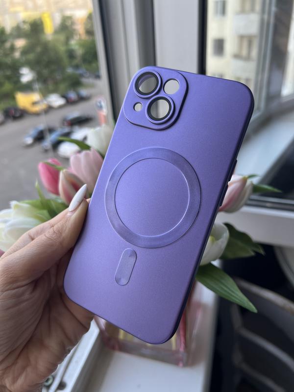 Чохол силіконовий в кольорі діп пурпл з магнітним кільцем MagSafe з захистом камери та вбудованим захисним склом на ній Відправлення Новою поштою та Укрпоштою
