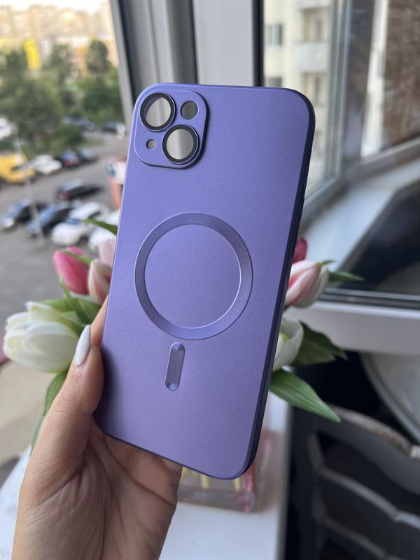 Чехол силиконовый в цвете дип пурпур с магнитным кольцом MagSafe с защитой камеры и встроенным защитным стеклом на ней Отправка по Новой почте и Укр-почт