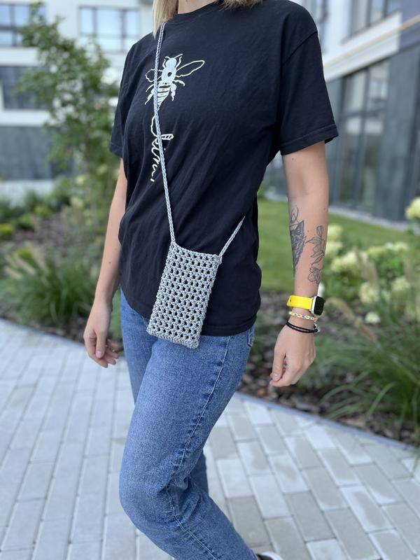 Продам хендмейд торбинку для телефона Состав полиэфирный шнур.