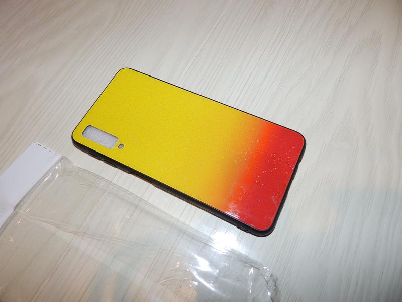 Чехол tpu+glass для samsung galaxy a7 2018 блёстки