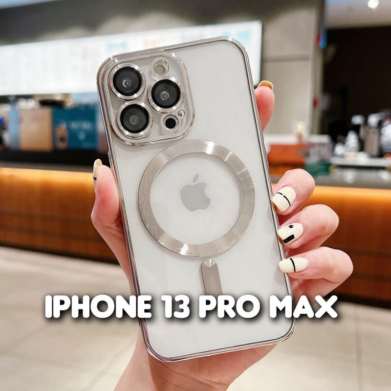 Shining Chrome Case with Magsafe для 13 Pro Max цвет: серебряный + Премиальный дизайн + Есть бортик вокруг экрана + Полноценная защита камеры (есть защитное стекло на каждой камере) + Закрытый низ + Наличие магнита Magsafe + Прозрачный дизайн не скрывает естественную красоту Вашего телефона + Все отверстия точно подогнаны, кнопки нажимаются хорошо