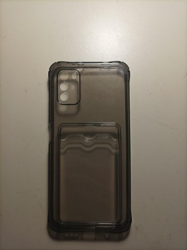 Чохол на телефон poco m3, чорного кольору, є відділ для карточки