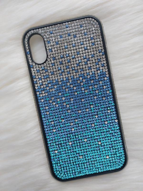 Блискучий, яскравий чохол з камінцями на iPhone Xs. Камінці наклеяні (не намальовані), яскраво блищать та переливаються. Розміщені градіентом: прозорі, сині, блакитні. Бокові частини теж мають камінці. Гарний захист смартфона, привабливий вигляд. Матеріал: пластик та силікон. Ціна за 1 шт. Додатковий опис та фото вишлю за бажанням. Є багато інших варіантів на різні моделі Samsung та iPhone, пишіть)