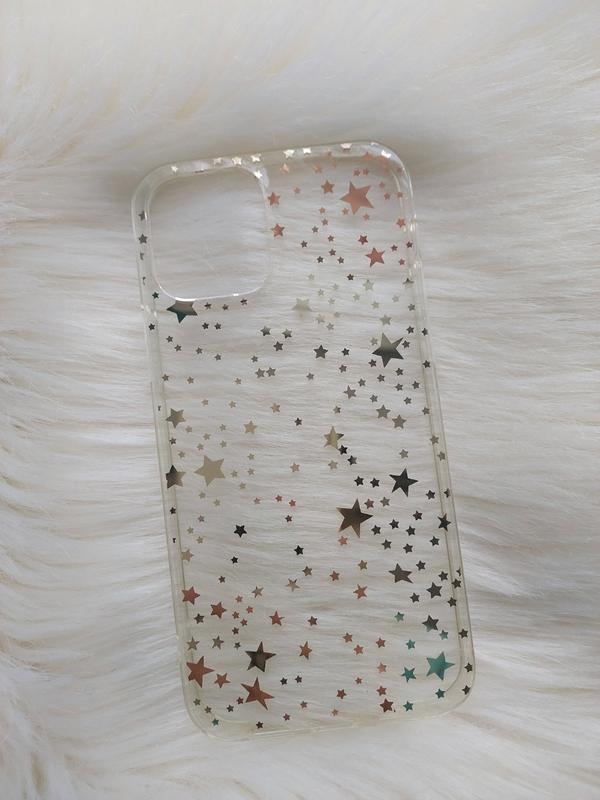 Привабливий прозорий чохол з зірками на iPhone 12. Силіконовий, зірки золотистого кольору - відзеркалюють. Компактний. Додатковий опис та фото вишлю за потреби. Є багато інших варіантів на різні моделі Samsung та iPhone, пишіть) У Полтаві самовивіз, в інше місто відправка Укрпоштою чи Новою Поштою.