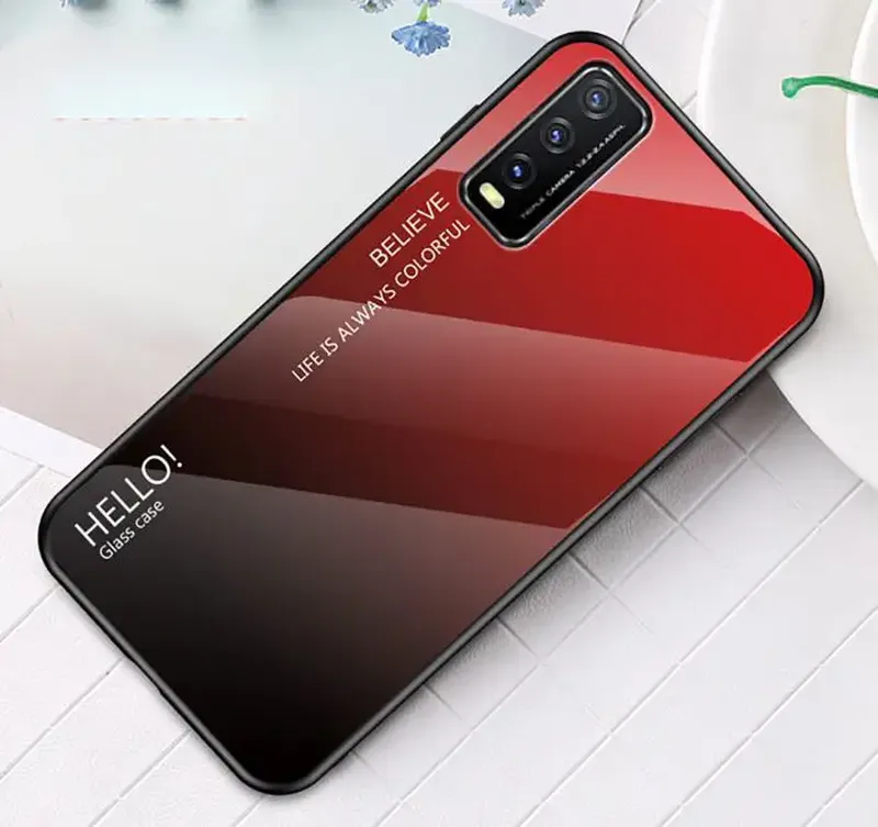 Чехол Vivo Y20 Gradient Hello Характеристики: Бренд – Hello Форм-фактор – накладка Материал – термополиуретан (TPU) + стекло Поверхность – гладкая, глянцевая Дизайн – ультратонкий Задумка – градиент Функциональное обеспечение – проемы под камеру, динамик, микрофон, регулятор громкости и внешние порты Конструкция 2 в 1: Силиконовый бампер Стеклянная задняя крышка Особенности: стеклянная крышка с красивым градиентом силиконовый бампер для защиты боковых торцов от повреждений не утолщает корпус Надежная система фиксации Свойства: Стильная накладка на тыльную панель телефона Красивый аксессуар для вас Подчеркивает индивидуальность смартфона Рассчитана на длительное использование Исключается деформация и выцветание Износостойкость и пыленепроницаемость Силиконовый ободок максимально плотно фиксирует телефон Амортизация ударов при падении Защита боковых торцов от сколов и потертостей Задняя крышка изготовлена из стекла Плотно прилегает к корпусу и не люфтит Крепкое сцепление с поверхностью Не скользит в руках Не утолщает корпус смартфона Быстрая установка/удаление