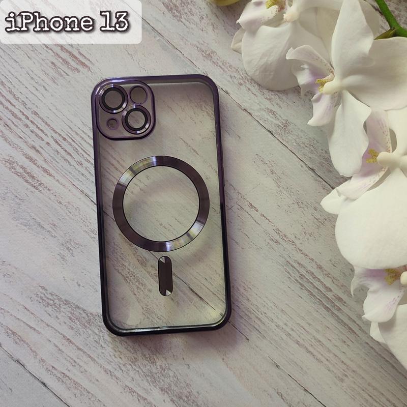 Чохол із підтримкою magsafe для iphone 13 прозорий силікон на айфон 13 із захисним склом н...